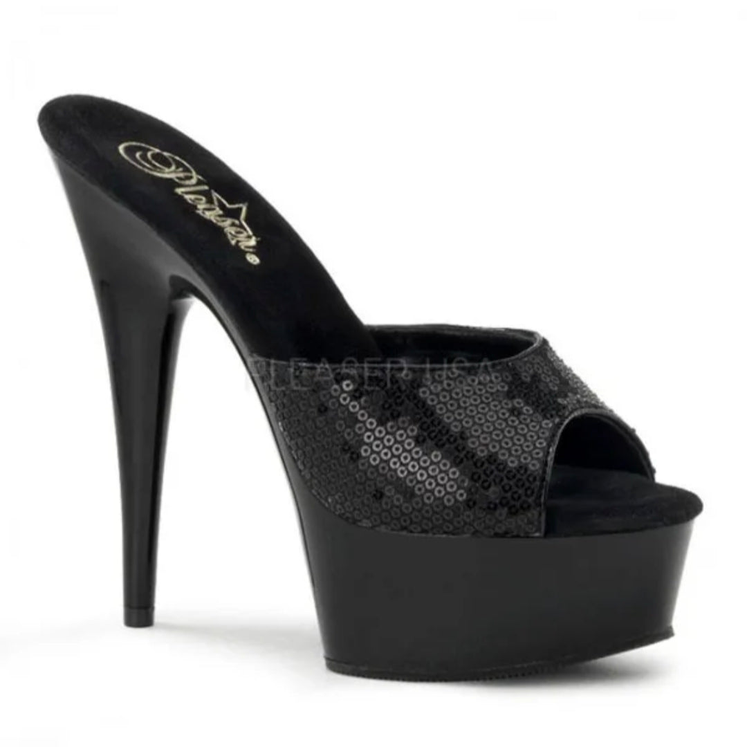 Turn every entrance into a moment with the Blackout Glam Sequin Platform Mules.